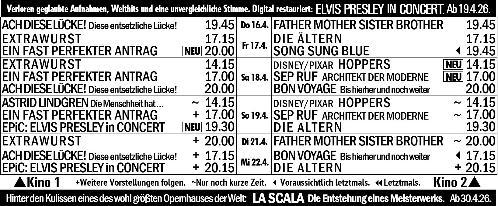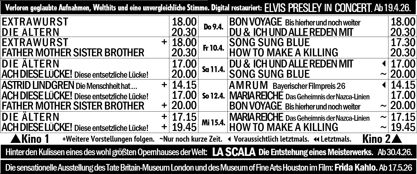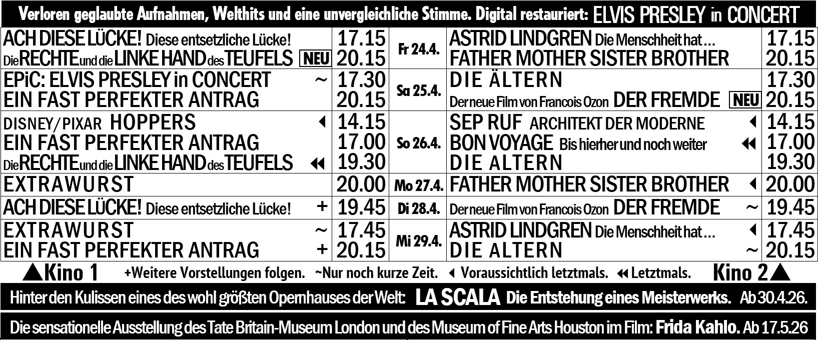 Fr 24.4.26 20h15. So 26.4.26 19h30.