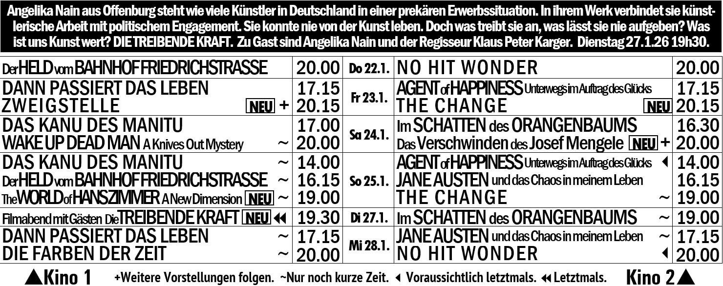 Die Offenburger Künstlerin Angelika Nain steht – stellvertretend für viele in Deutschland lebende Künstler*innen – in einer prekären Erwerbssituation. Seit ihrem Studium an der Freien Hochschule für Kunst und Grafikdesign in Freiburg versucht sie seit 30 Jahren vom Kunstschaffen zu leben. Ihre Werke – Malerei, Objekte, Druckgrafik – spiegeln eigene Lebenserfahrungen wider: Die langjährige Arbeit mit Geflüchteten, die Beschäftigung mit Kolonialismus und Postkolonialismus, die Erlebnisse als Teil der Crew auf einem Seenotrettungsschiff zwischen Libyen und Italien. Aber auch der eigene Garten als Ort der Reflexion über das Werden und Vergehen in der Natur. An- gelika Nain konnte nie von der Kunst leben, sie musste immer in Nebenjobs hinzuverdienen. Doch es gibt diese treibende Kraft, die sie nie aufgeben lässt. Es bleibt die Frage: Was ist uns Kunst wert? programmkino.de.